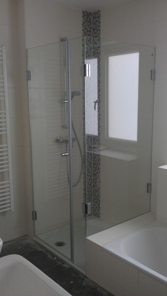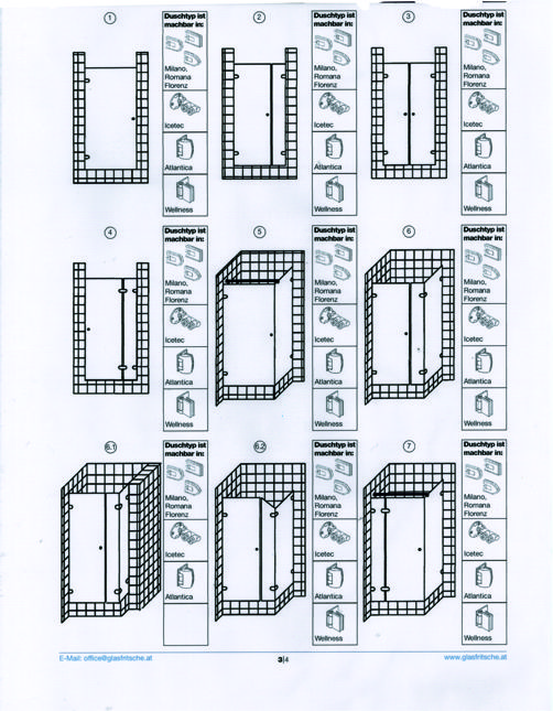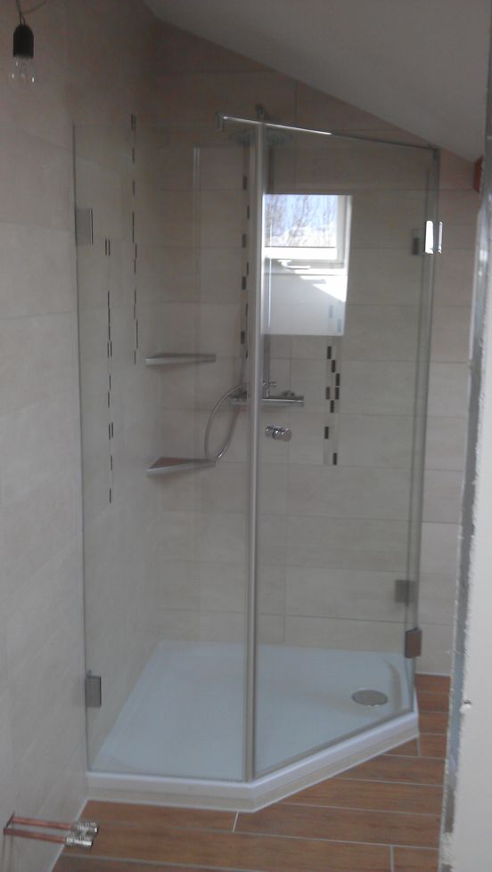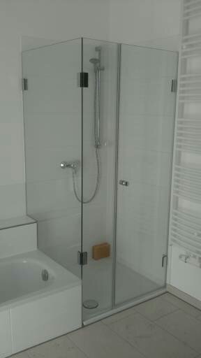 Pendel-Duschtüren werden mit verschiedenen Bandtypen montiert auch Glasausschnitte, kein Problem